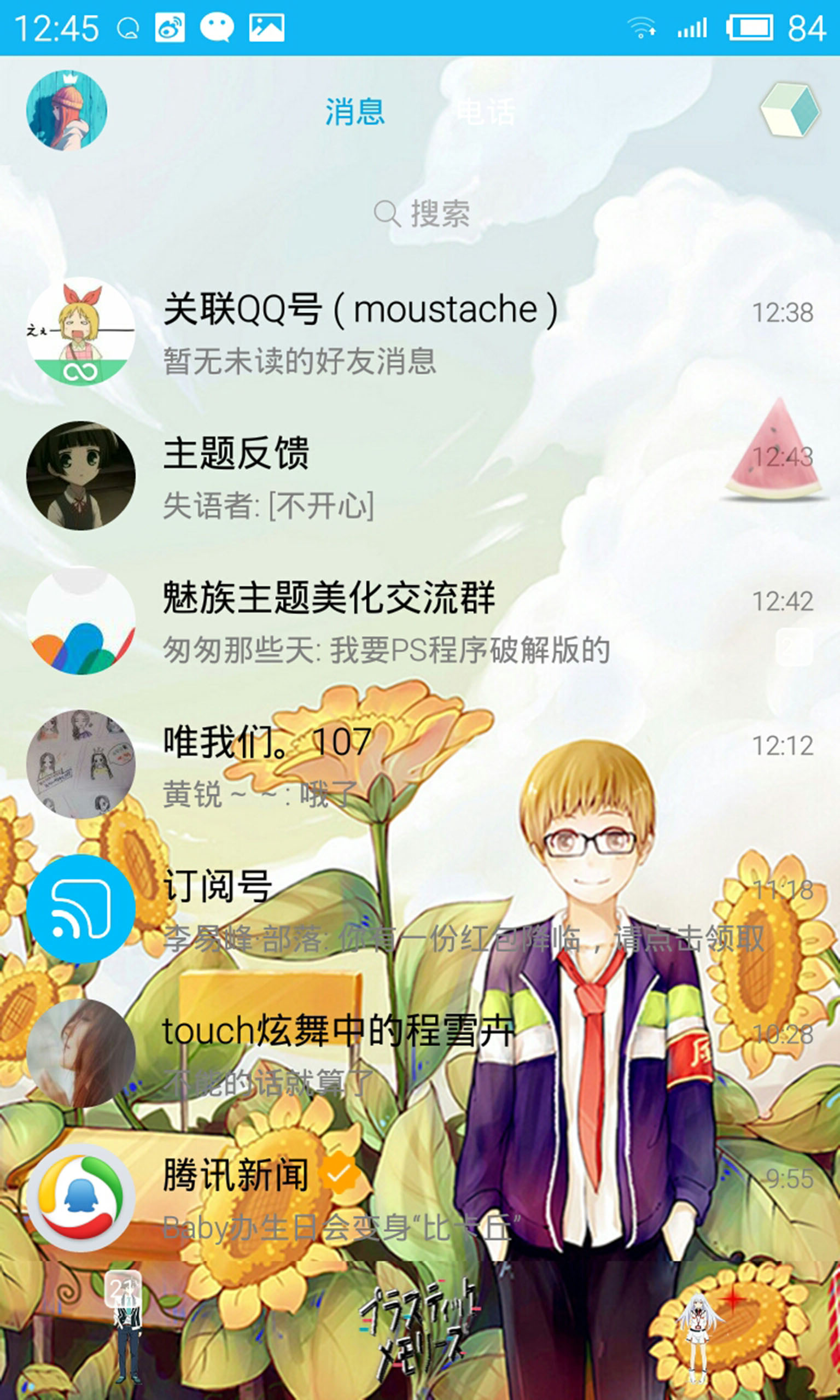 ps:flyme4.5系统部分机型不支持qq,状态栏